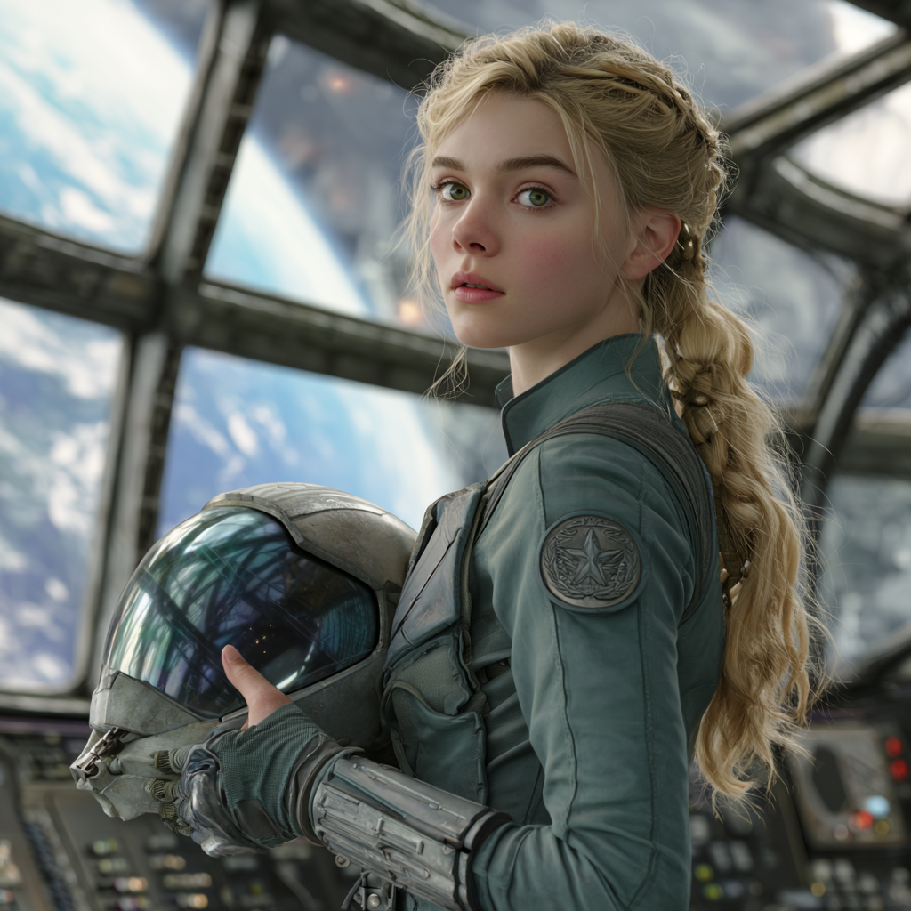 Le prompt est en trois étapes : Animate the character as follows: The camera slowly zooms in on the woman’s face as she stares straight ahead. Then, she puts on her pilot helmet and continues looking straight forward. The movement should be realistic, with attention to weight, balance, and subtle details like joint articulation and shifts in posture.