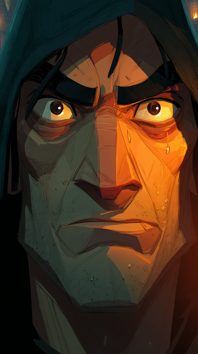 Le prompt est en trois étapes : Animate the character as follows: The camera remains fixed and does not move. The face closes its eyes, then gently moves its head from right to left before sighing in despair. The movement should be realistic, with attention to weight, balance, and subtle details like joint articulation and shifts in posture.