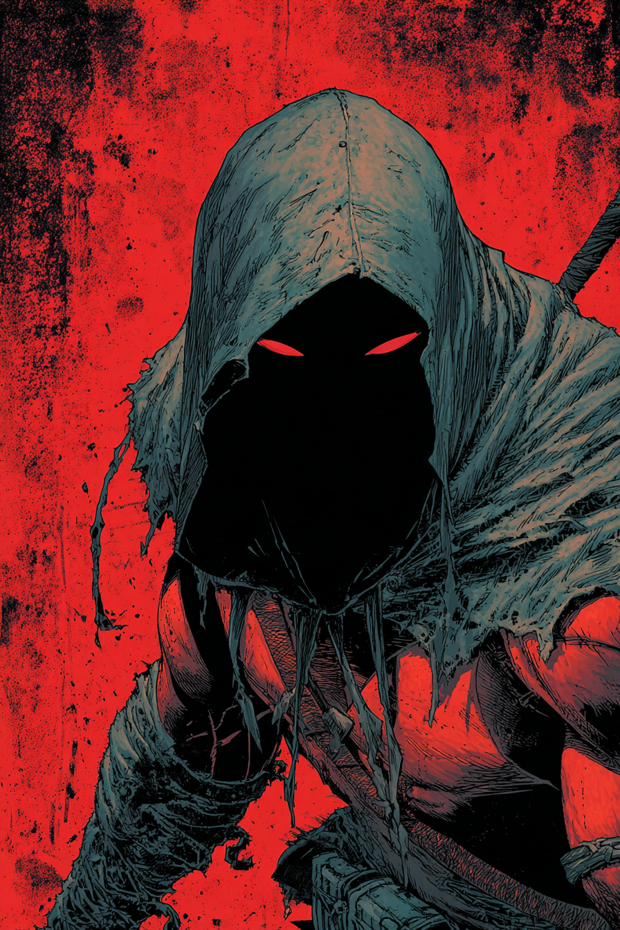 Le prompt est en trois étapes : Animate the character as follows: The camera is centered on the man’s eyes in the middle of his face as he stares straight ahead. Then, the camera slowly zooms out while the character removes his hood, revealing his hair. His hairstyle is an afro, and his hair is dyed in rainbow colors The movement should be realistic, with attention to weight, balance, and subtle details like joint articulation and shifts in posture.