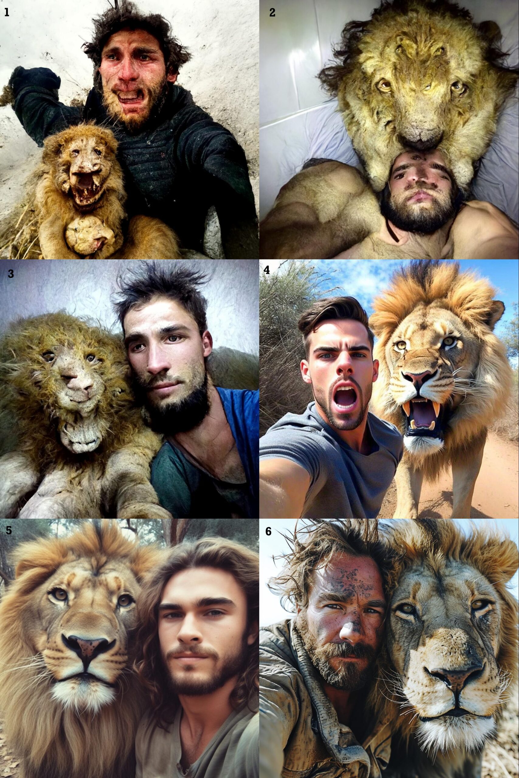 Dessine un jeune homme qui pose avec un lion